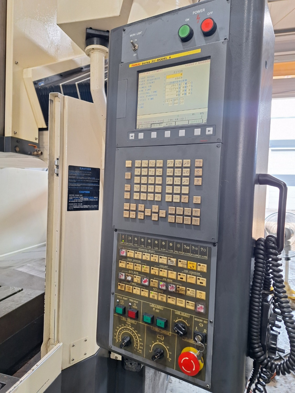 FANUC 31i-MA,데이터서버,에어블로우,오토파워오프,BT50,12000RPM(직결식),ATC 40EA,스핀들오일쿨러,리니어스케일(3축),칩컨베이어(우측방)/칩통